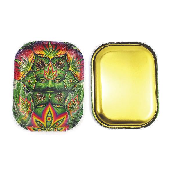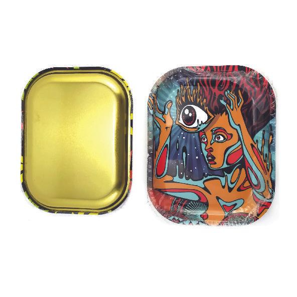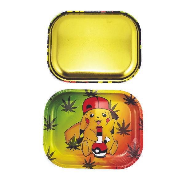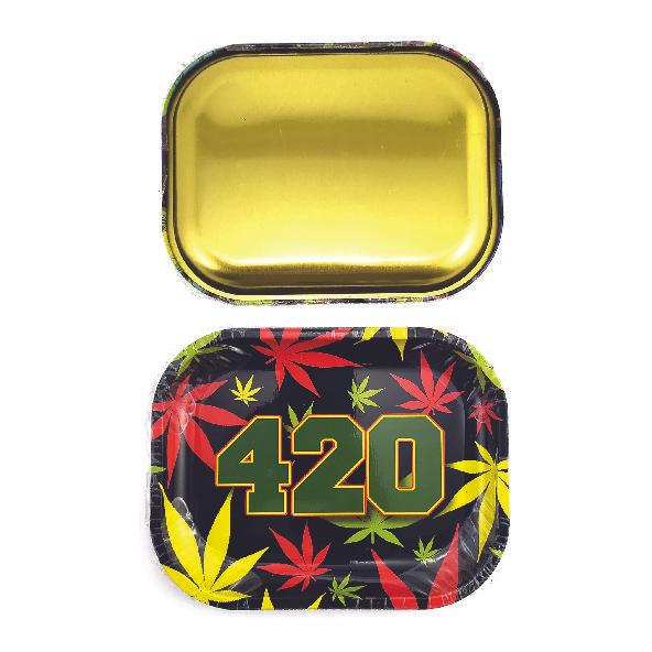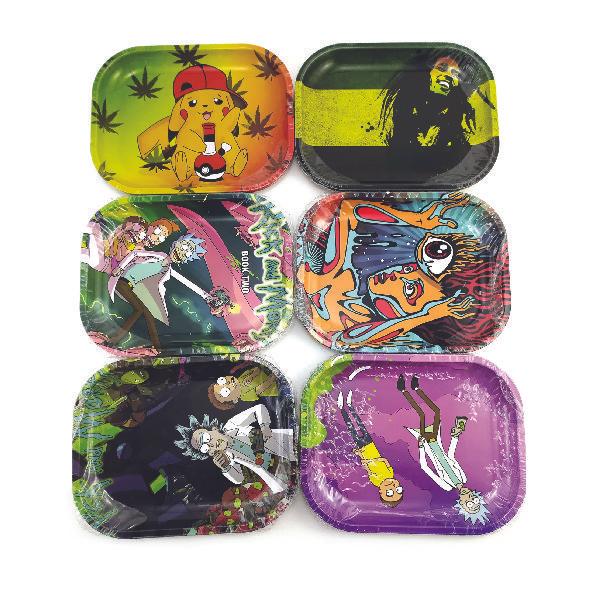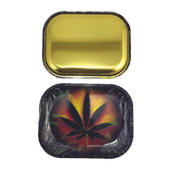 Mesa pequeña de 18cm x 14 plato para fumar, bandeja de hoja lata rodante de estaño, tabaco